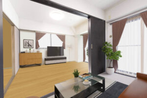 リビングはバルコニーに広く面しているワイドリビングになっており、陽光溢れる明るいリビングで快適にお過ごしいただけます。